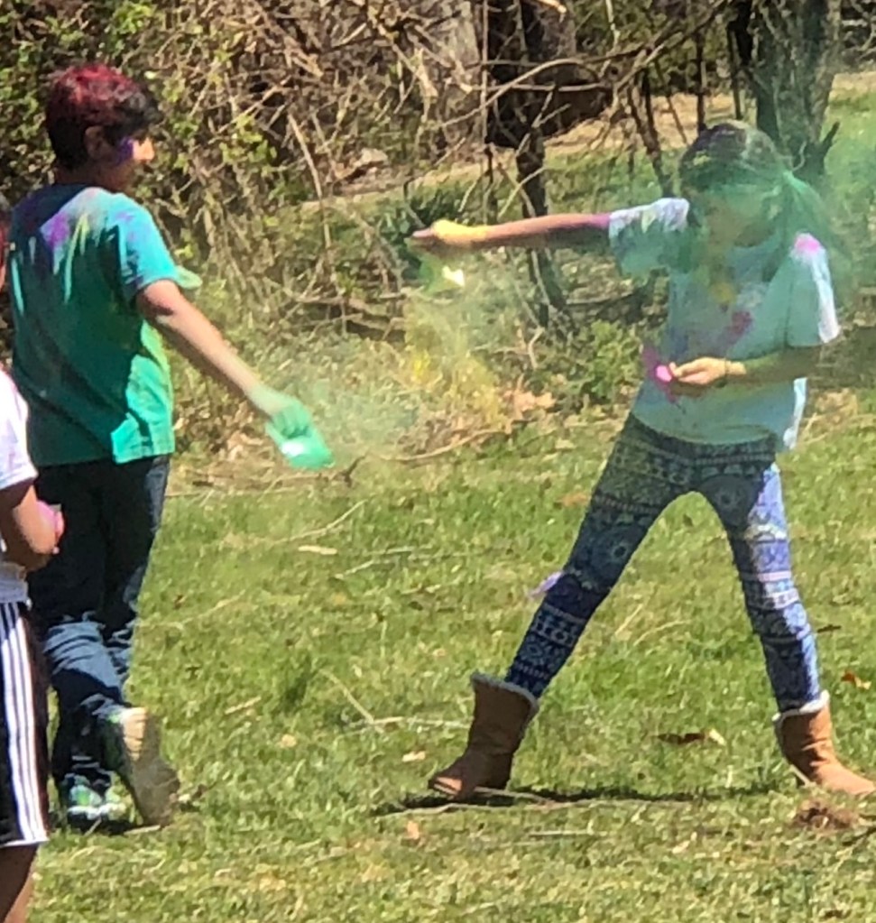 Growing up in India, Holi was my favorite festival. I couldn’t wait for the morning of Holi to dawn wherein children in the entire neighborhood would be busy filling their household buckets with water, mixing in it the colored powder called “Gulal”, and then filling water balloons with it. Around 8 am or so, outside the houses, there would be lined up a multitude of buckets filled with water balloons and colored water that would be used with water guns or “pichkaris” (plastic tubes that take in and shoot out water). Up until noon, everyone outside their homes was a target of colored powder and colored water. In the yard, on the streets, by the temples. Everywhere there would be a fog of colors and a beautifully painted human canvas.